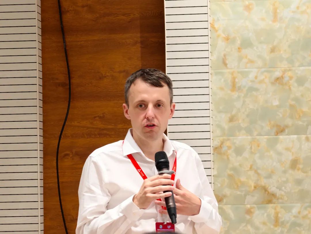 衡水东辉生物科技有限公司总经理朱思博讲解了生产型肥料助剂的发展历程及在新特肥中的设计与应用。他介绍,生产型肥料助剂应用于肥料生产端,能够改善肥料质量、提高肥料产量。衡水东辉的有机肥包衣粘菌技术、全水溶防结技术、和复合肥防结剂处于行业领先水平。其中,公司的包衣粘菌产品经实验对市面上绝大多数菌剂均不发生反应,具有良好的抗冻性和热塑性。