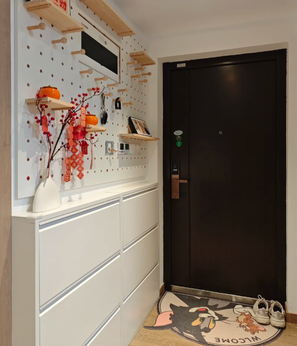 若你家的玄关没有位置装玄关柜,或者担心玄关柜占地方,还可以利用墙壁上的空间,